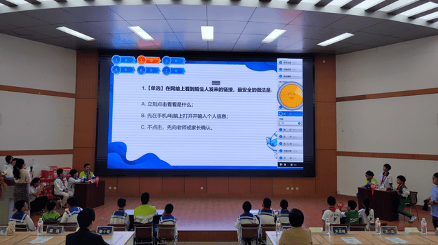 接下来的收集平安及编程学问竞答将现场氛围推向。同窗们随机组队、正在严重激烈的比拼中巩固学问?。