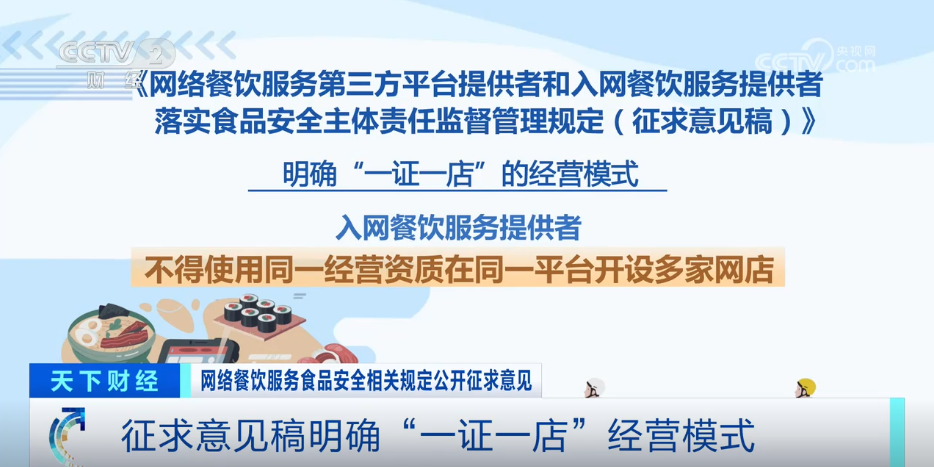 收罗看法稿明白“一证一店”的运营模式。入网餐饮办事供给者不得利用统一运营天分正在统一平台开设多家网店。平台供给者对入网餐饮办事供给者利用统一运营天分反复申请入网的行为该当予以。