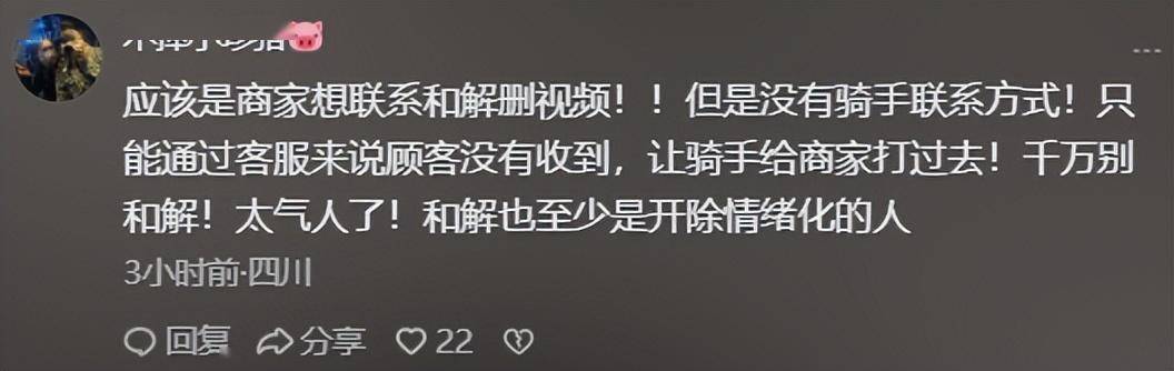 有人猜测:“商家想联系骑手息争删视频,但没有骑手的联系体例,就打通顾客报客服说到餐,逼骑手自动联系商家。”。