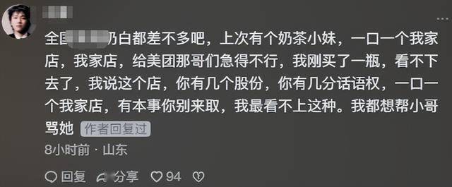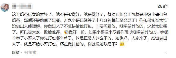 视频中那位戴着口罩的伙计,手上忙着制做其他饮品,嘴里却能抽暇回怼骑手:“我后面要长手了,我必定给你拆啊!”。